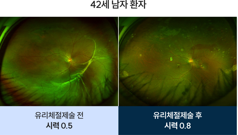 박리가 시력의 핵심인 '황반부'를 침범하기 전 수술해야 시력을 보존 할 수 있습니다.